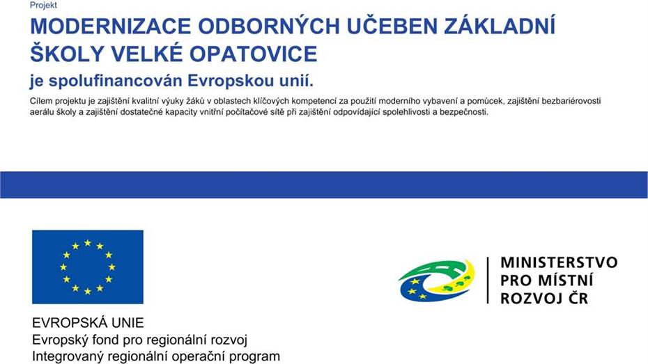 Projekt IROP: Modernizace odborných učeben ZŠ Velké Opatovice – reg.č. CZ.06.2.67/0.0/0.0/16_062/0004237