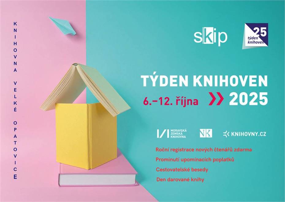 Týden knihoven se v roce 2025 uskuteční od 6. do 12. října. Tato tradiční akce, organizovaná SKIP (Sdružení knihovníků a informačních pracovníků), zahrnuje různé aktivity a akce zaměřené na podporu knih, čtenářství a volnočasového komunitního setkávání. Spousta zajímavých akcí po celý měsíc.